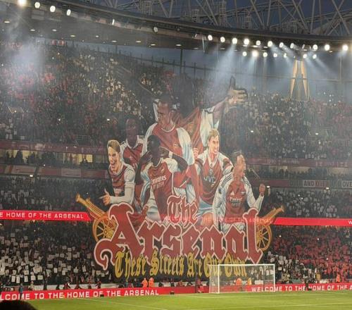 多位枪手传奇在列,阿森纳对热刺的北伦敦德比赛前打出巨幅Tifo