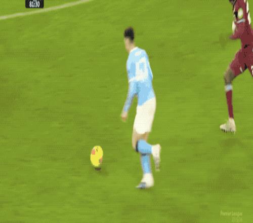 第82分钟,福登禁区外突然起脚远射,阿雷奥拉腾空而起,将球托出横梁。