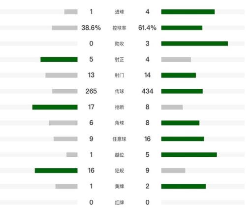 第72分钟,马杜埃凯角球传中,马丁内利头球完成帽子戏法,阿森纳4-1锁定胜局。