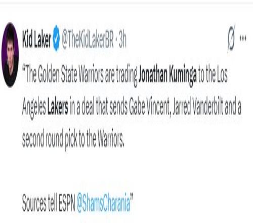 曝去年湖人已关注库明加:佩林卡喜爱成推手3换1报价勇士未接受
